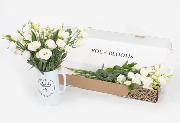 Embrace delicate beauty with White Lisianthus Blooms from Box and Blooms. These exquisite flowers, with their layers of delicate petals, offer a sense of elegance and serenity. Perfect for Auckland flower enthusiasts seeking timeless floral expressions.